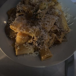 Rigatoni, mild fennel sausage, and diced onions in a spicy cream sauce.